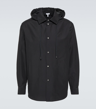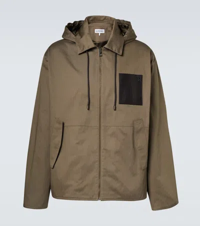 Logo-debossed Leather-trimmed Cotton-twill Hooded Jacket In Blue