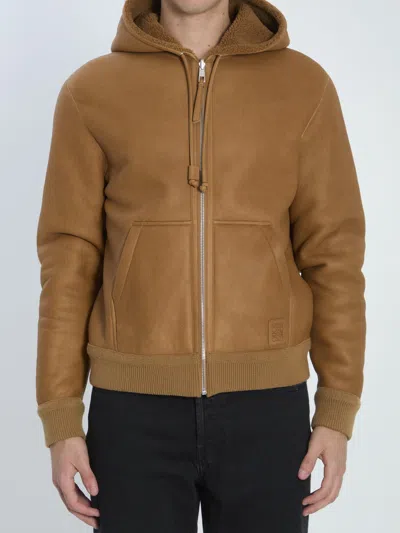 Hooded Reversible Leather Jacket In Brown