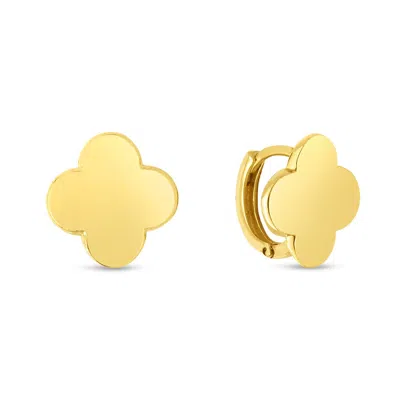 Ladies 14k Gold Clover Huggy Hoop Earrings In Pattern