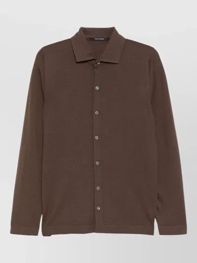 Iago Cardigan Shirt Collar Ribbed Knit In Brown