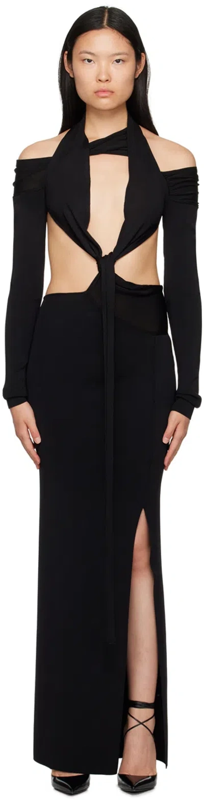 Inio Adhesive Hollow-out Long Dress In Black
