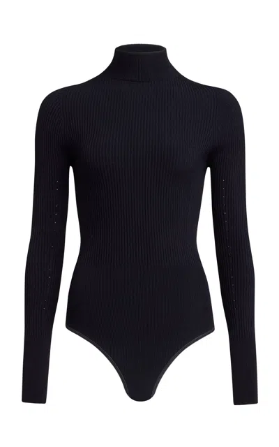 Turtleneck Ribbed-trim Stretch-mesh Midi Dress 6 In Noir Alaia