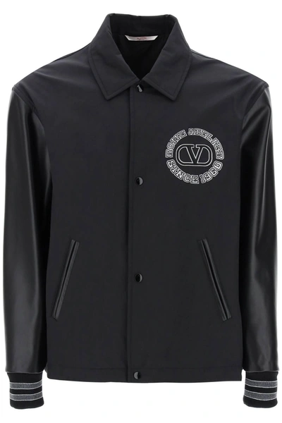 Track Jacket With Leather Sleeves And Patches In Black