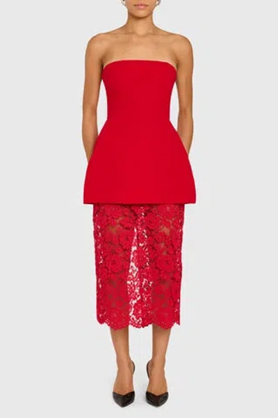 Jada Strapless Lace Midi Dress In Black