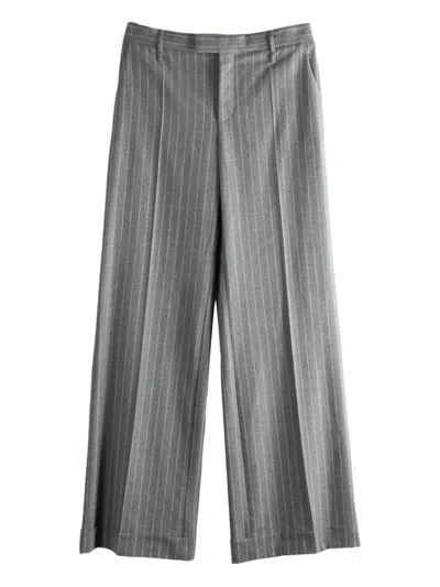 Embellished Pinstripe Wide-leg Trousers In Gray