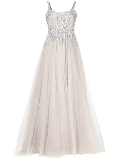 Jasmine Embroidered Strapless Column Gown In Creamfloral
