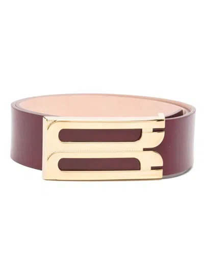 Jumbo Gold-plated B-logo Leather Belt In Brown