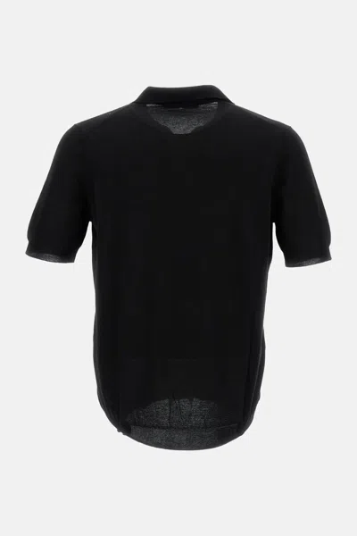 Black Knitted Polo Shirt With Polo Style Collar And Short Sleeves