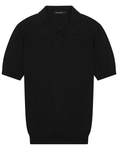 Black Knitted Polo Shirt With Polo Style Collar And Short Sleeves