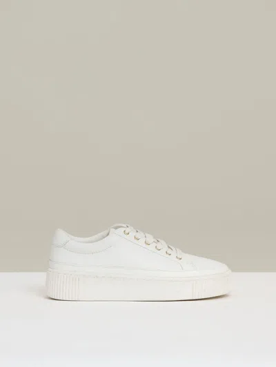 White Grained Leather Platform Trainers