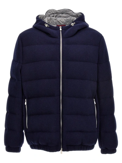 Quilted Wool-blend Flannel Down Jacket In Gray