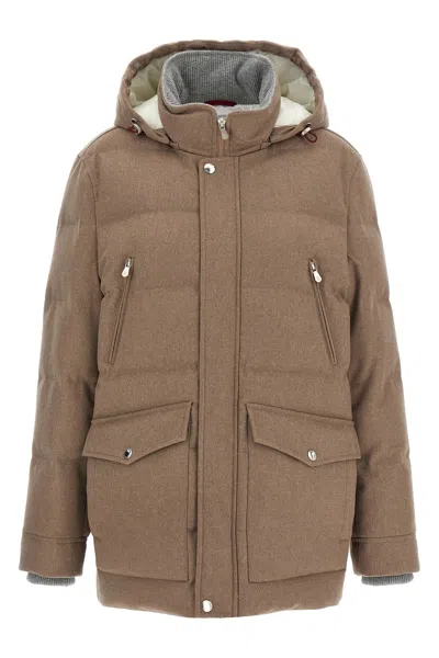 Flannel Down Jacket Puffer Jackets Beige In Brown