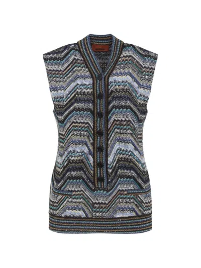Caperdoni Chevron Knit Vest Sleeveless In Blue