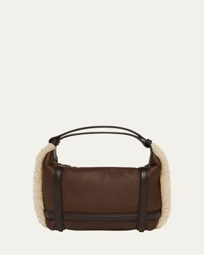 Wallace Mini Lamb Fur Top-handle Bag In Brown