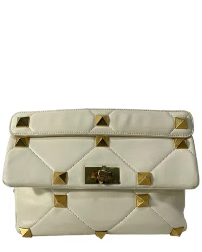 Roman Stud Flat Sandals With Signature Pyramid Studs In White