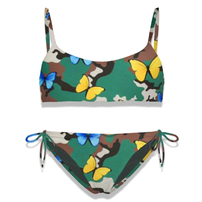 Kids' Girl Bikini Butterfly Print On Camouflage Background In Green