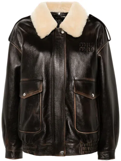 Long-sleeve Leather Jacket In Brown