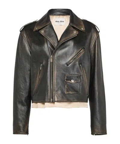 Black Washed Leather Jacket In Multi