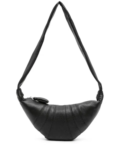 Medium Grained Leather Croissant Shoulder Bag In Black
