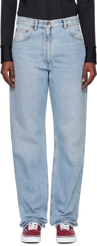 Garavani Light Blue Denim Wide Leg Jeans In Multi