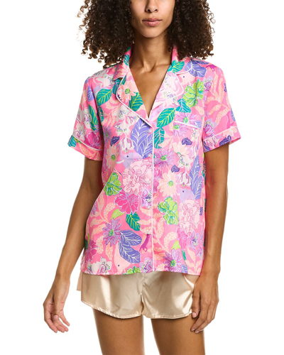 Kiran Button Down Top In Passion Fruit Pink Jungle Escape Engineered Woven Top