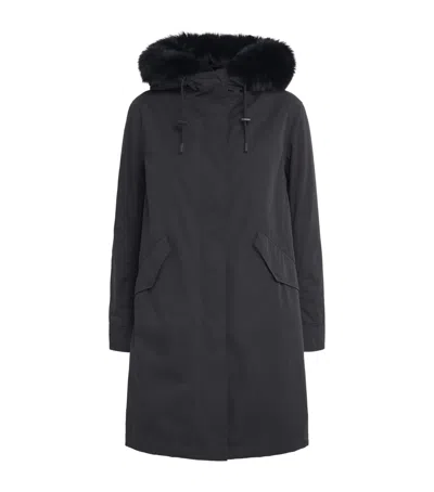 Fox-rabbit Fur-trim Parka In Black
