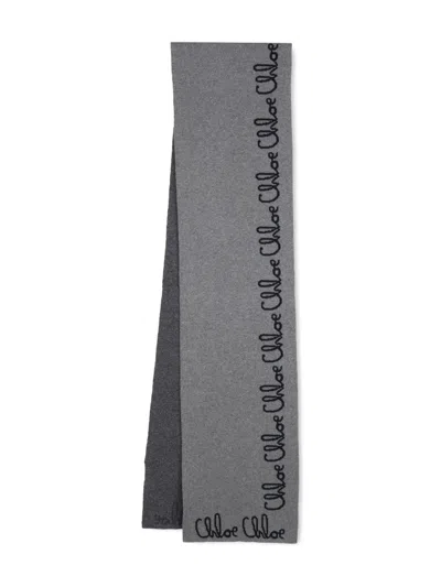 Logo-embroidered Scarf In Grey
