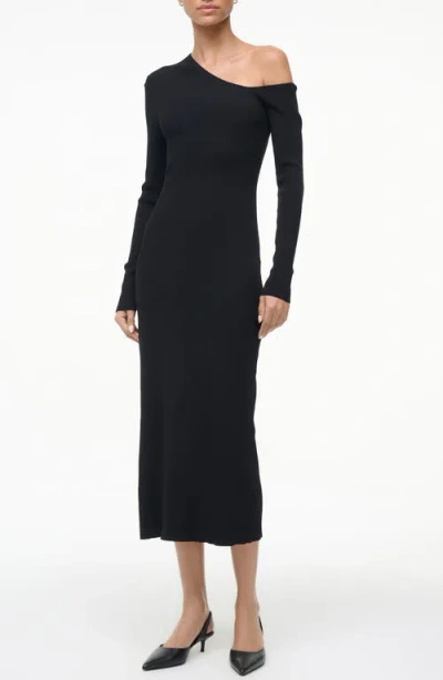 Lois One-shoulder Long Sleeve Rib Dress In Black