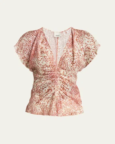 Lonea Draped Floral Silk Jacquard Top In Brown