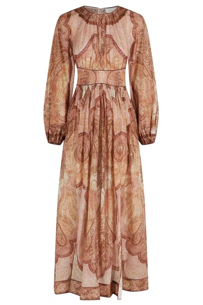 Pleated Charmeuse Long-sleeve Midi Dress In Pink