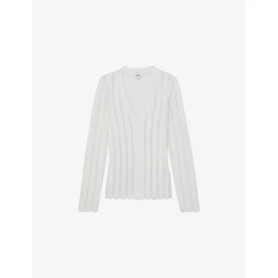 Womens White Loui Open-stitch V-neck Knitted Jumper