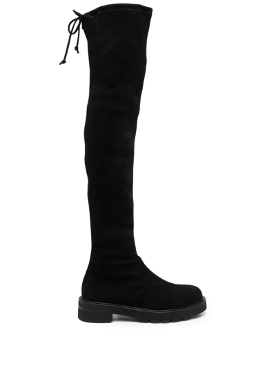 Lowland Stretch Suede Over The Knee Boots In Black
