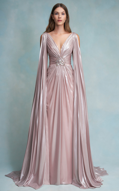 Metallic Long Sleeve Trumpet Gown In Bottle Green
