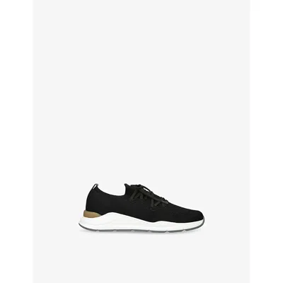 Mens Navy Brand-embossed Knitted Low-top Trainers