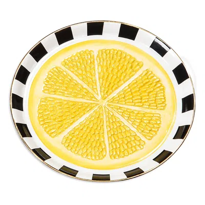 Mackenzie Childs Sterling Check Enameled Steel Round Tray In Neutral