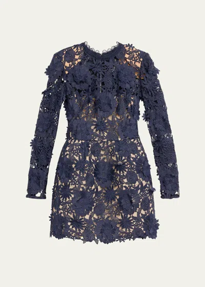 Maia Floral Lace Applique Mini Dress In Navy