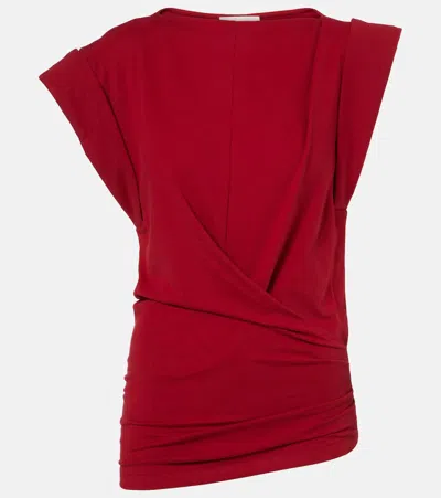 Maisan Asymmetric Draped Short Sleeve Top In Pink