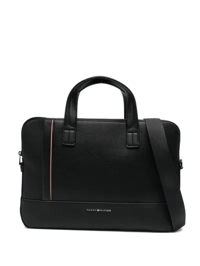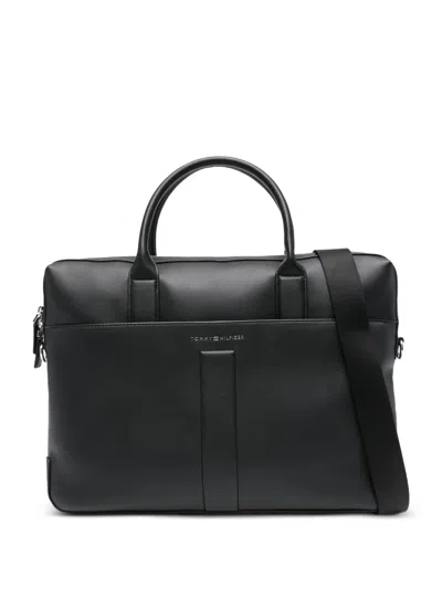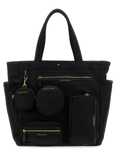 Black Tote Bag With Top Zip Closure And All-over Print In Tech Fabric Man In Multi
