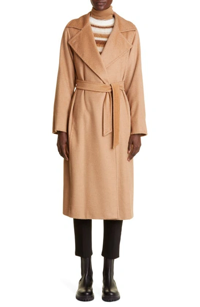Manuela Camel Hair Wrap Coat In Neutral
