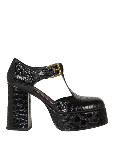 鳄鱼纹效果皮革玛丽珍高跟鞋