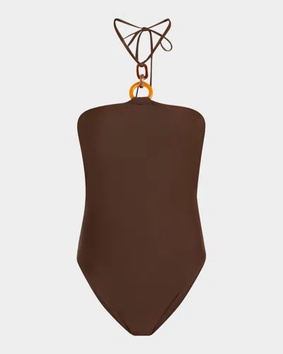 May Ring Halter One-piece Swimsuit In Beach Brown