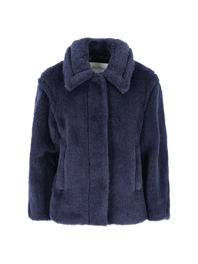 Blue Teddy Bear Icon Coat In Alpaca And Wool In Black