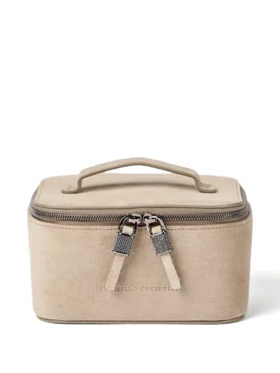 Grained Leather Jewelry Box With Shiny Zipper Pull In Neutral