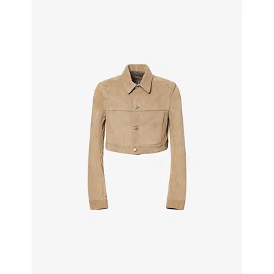 Mens Brown Cast Long-sleeve Leather Bomber Jacket