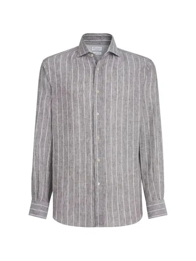 Mens Sage Stripe Ruban Striped Linen Shirt In Blue