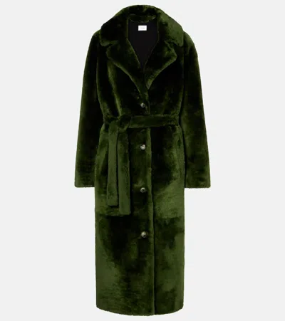 Madelina Belted Lamb Shearling Long Coat In Brown