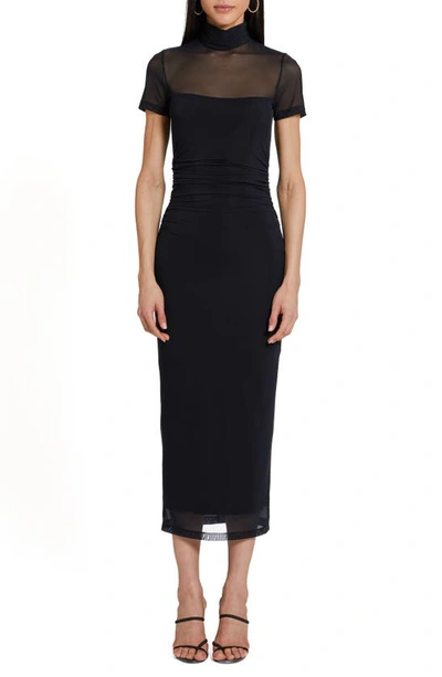 Mesh-paneled Stretch-knit Midi Dress In Black