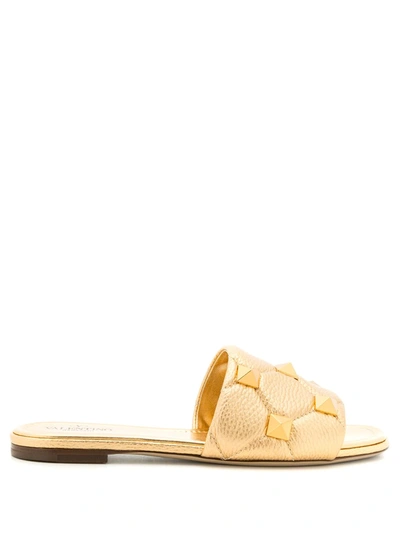 5mm Rockstud Metallic Leather Flat Slide Sandals In Pink
