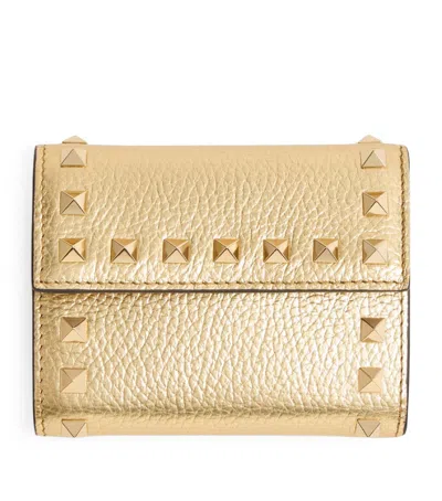 100mm Rockstud Intreccio Metallic Leather Ankle-strap Pumps In Gold