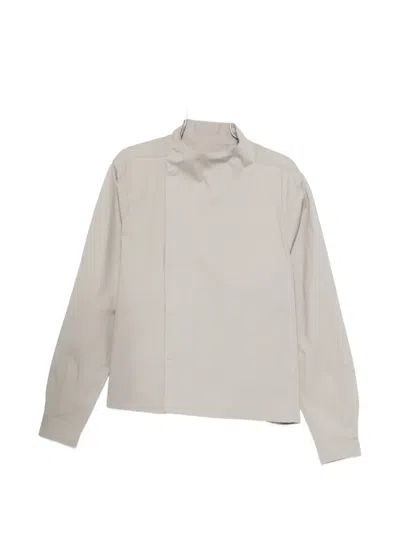Leather Collared Jacket With Front And Lateral Pockets In Neutral